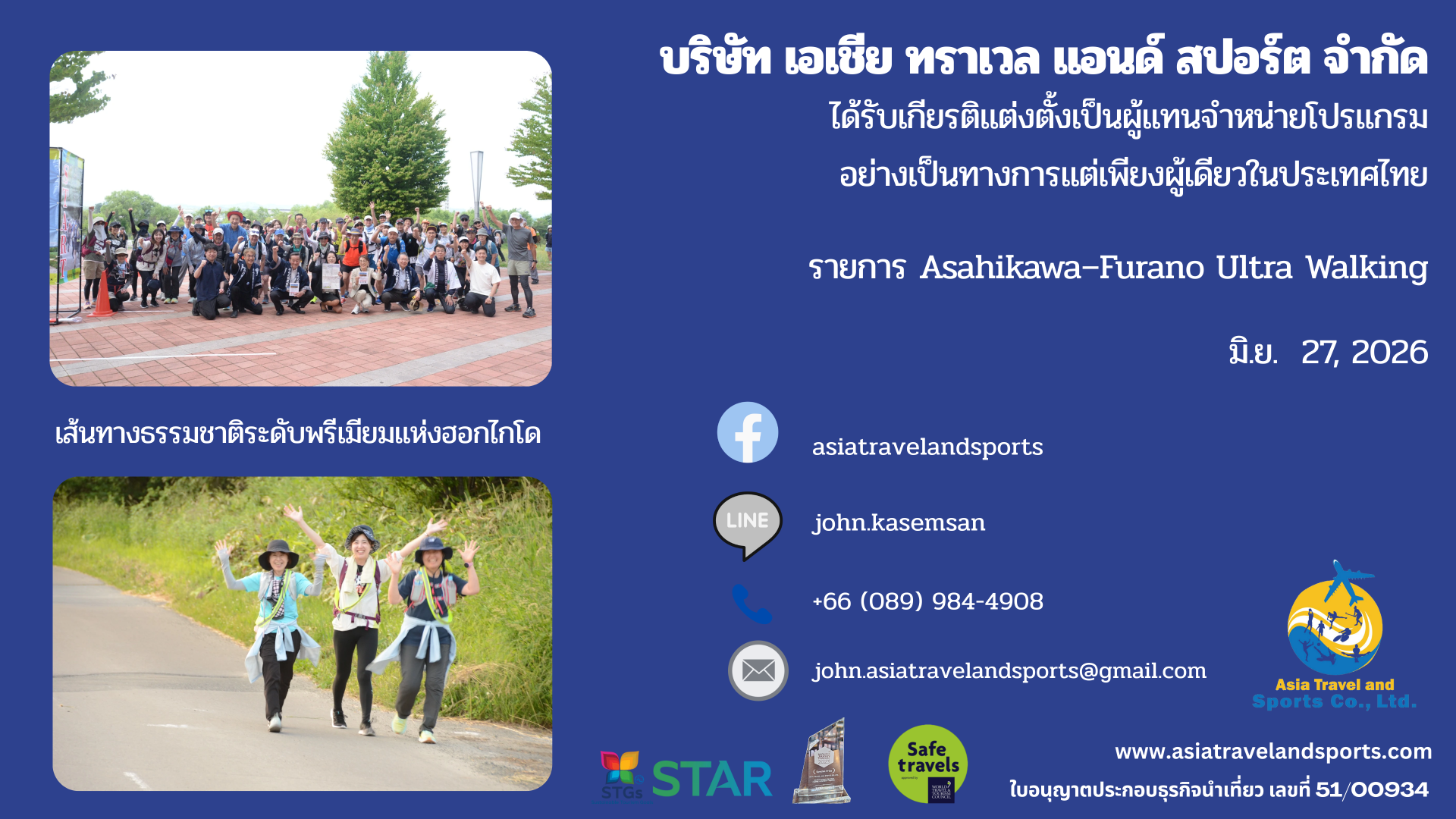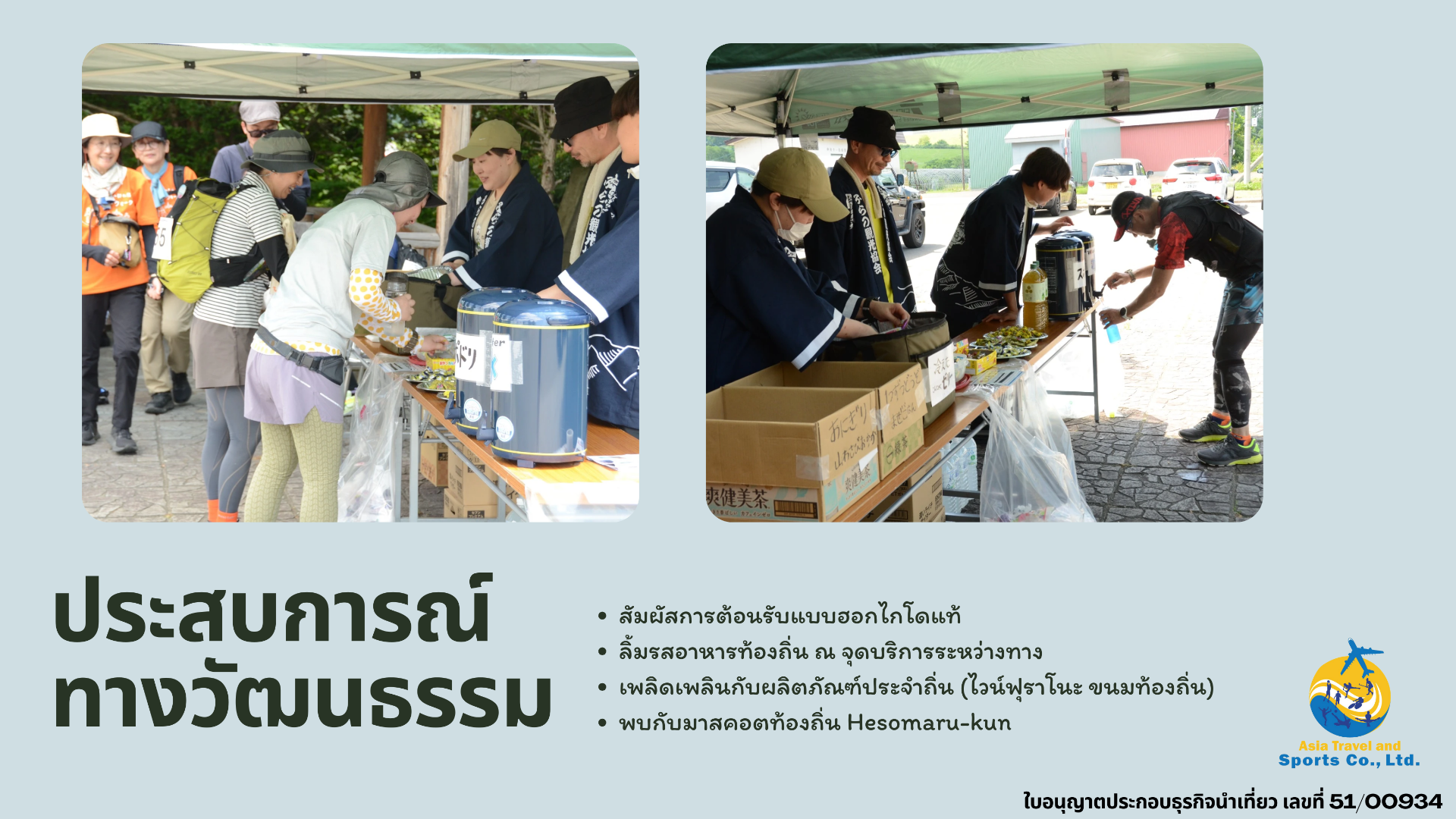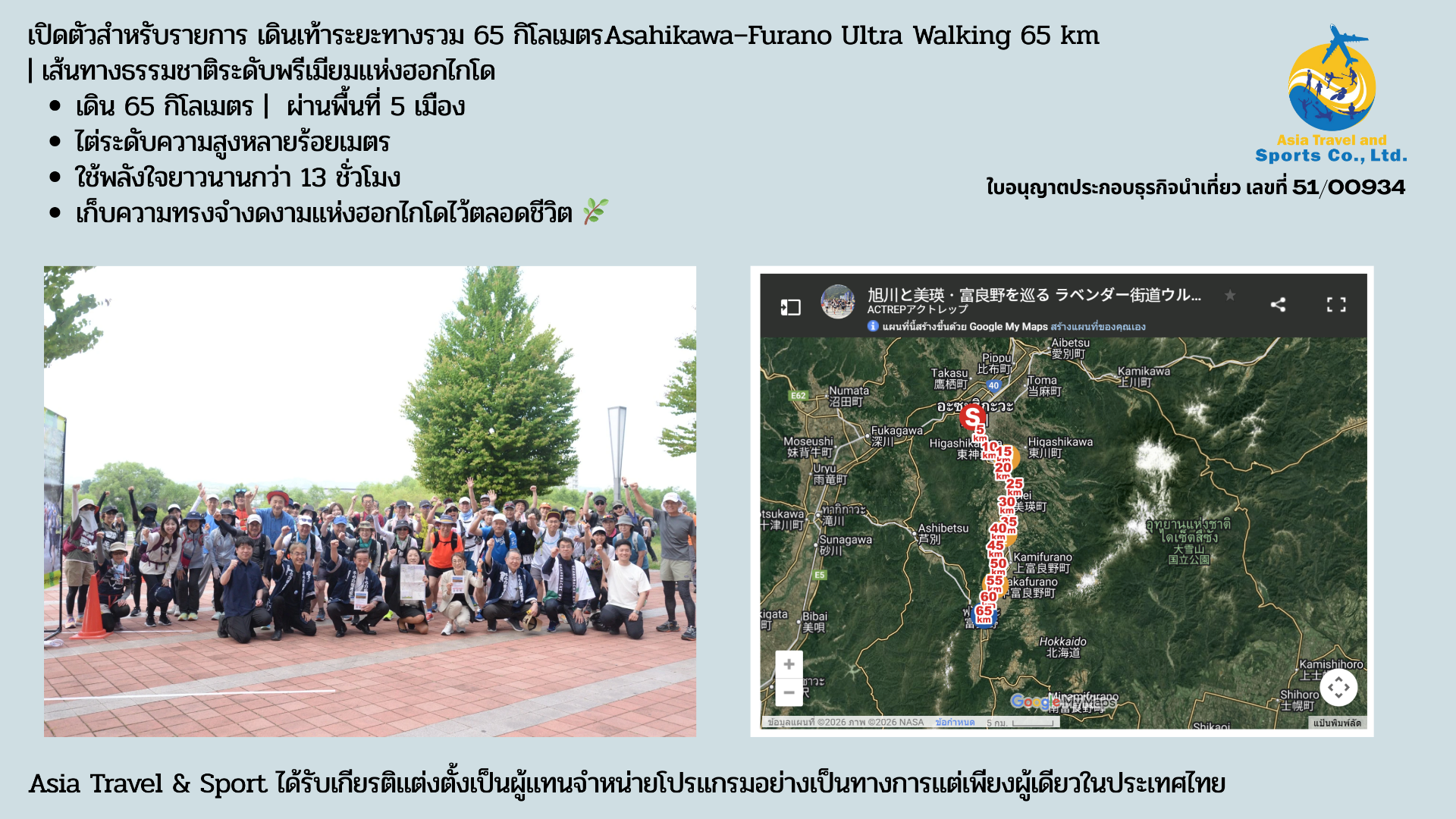 We are an executive event organizer officially authorized by the Japan Ultra Walking Association. Our local operations are registered with the Hokkaido Prefectural Government as a licensed land operator, ensuring professional and reliable service for all participants.