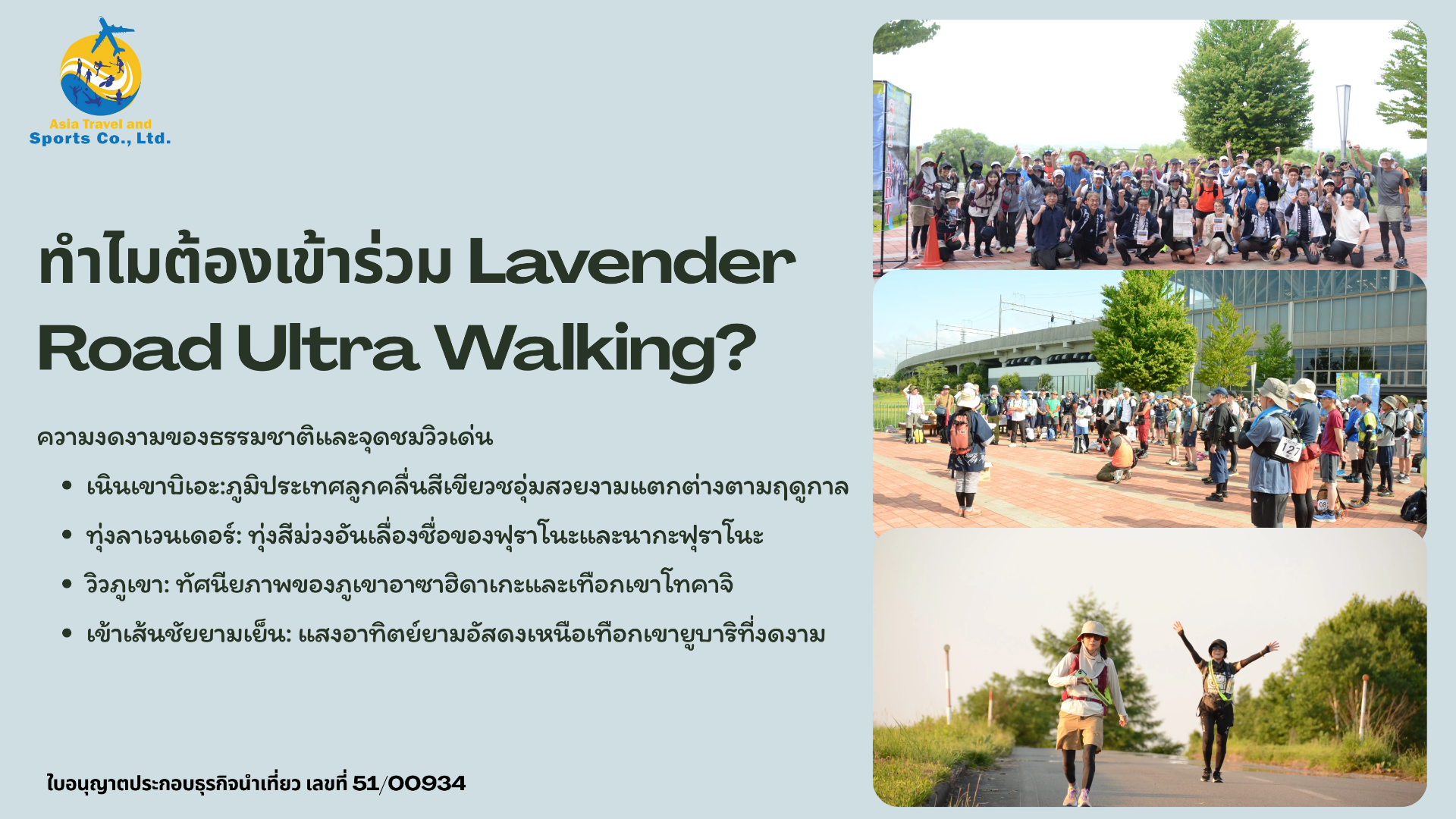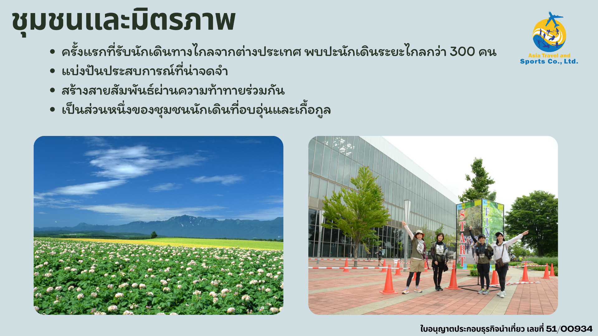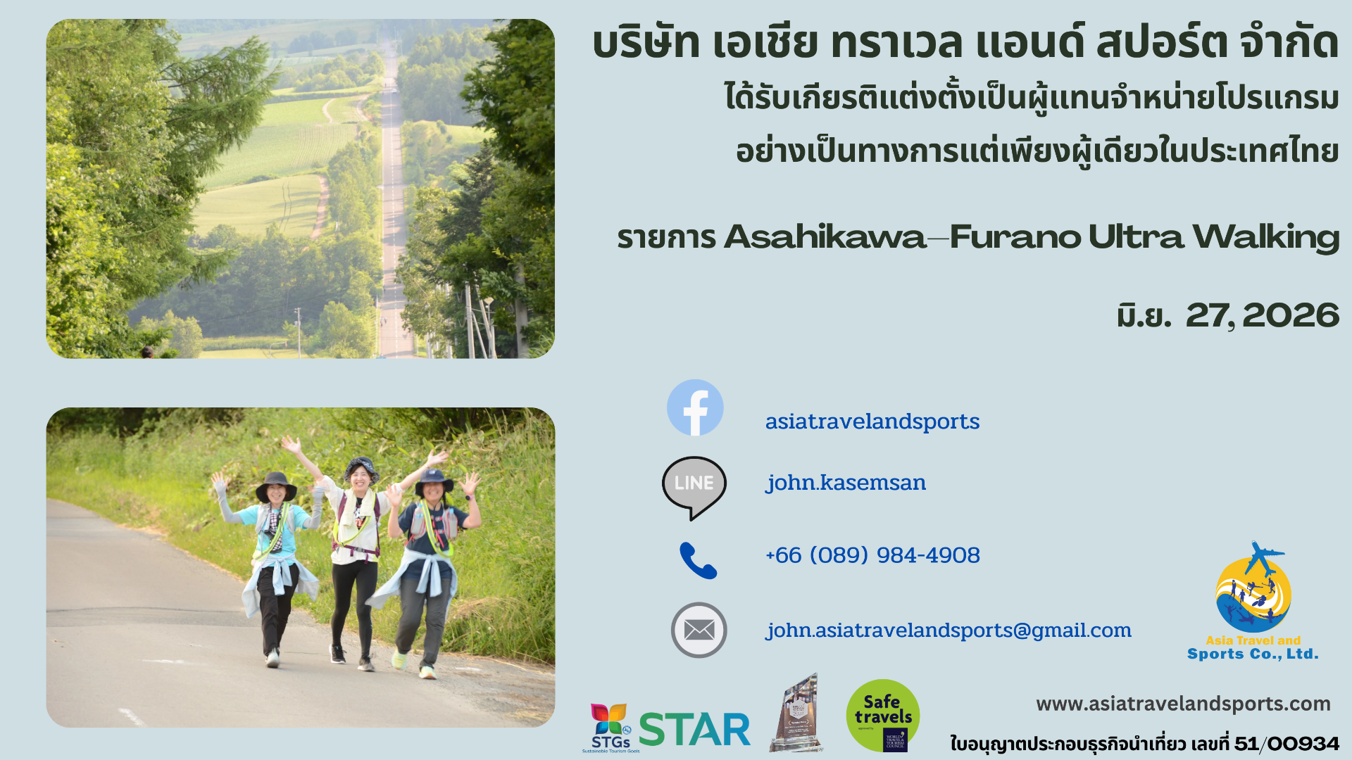 We are an executive event organizer officially authorized by the Japan Ultra Walking Association. Our local operations are registered with the Hokkaido Prefectural Government as a licensed land operator, ensuring professional and reliable service for all participants.