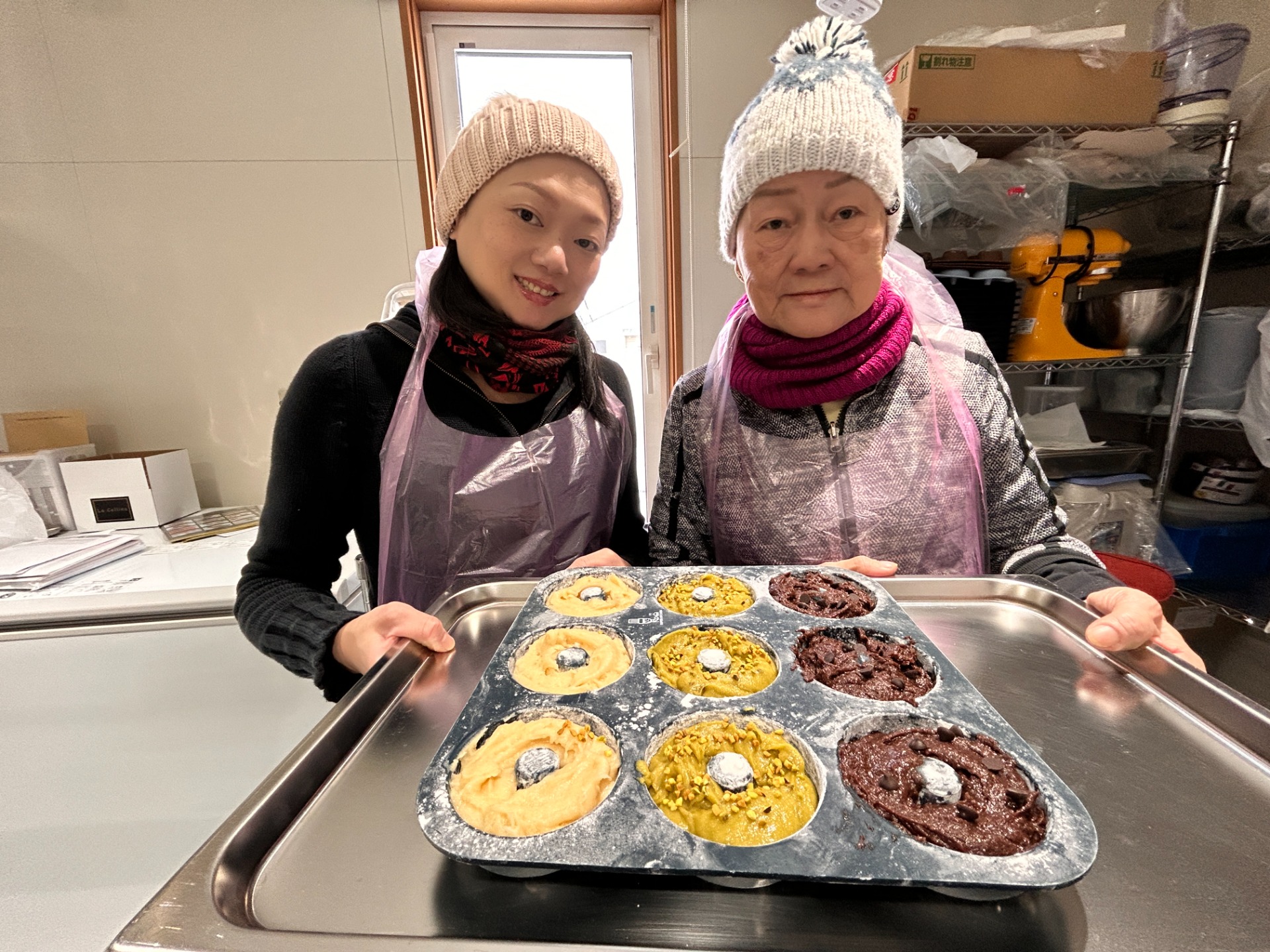 お母さん、娘、おばあちゃんはスイーツ作り体験
